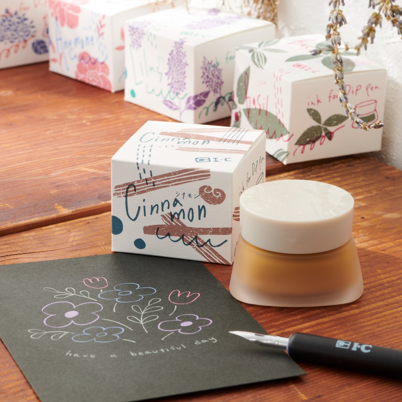 アイシーから『てがきを楽しむ』ことをコンセプトにした『てがき時間』シリーズのインク新色が誕生しました。大人気の『くすみカラー』5色・シナモンスパイスをイメージしたブラウンベースのインク色です。