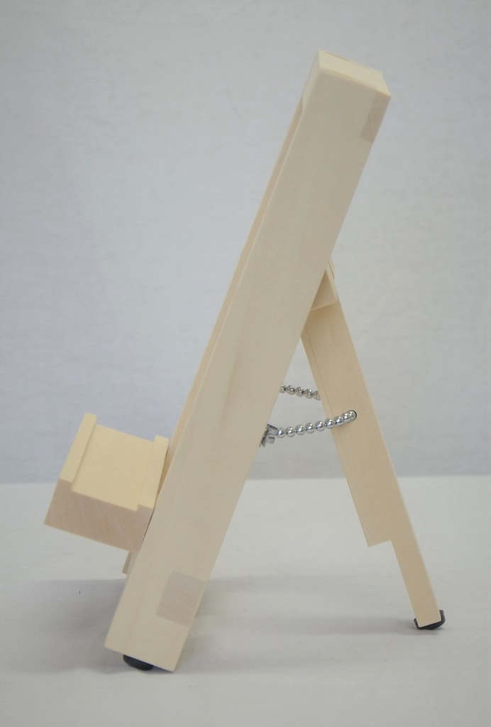小品の製作展示に便利。たたむと約3cmの厚さになり、受けはイーゼル上部に収納できます。