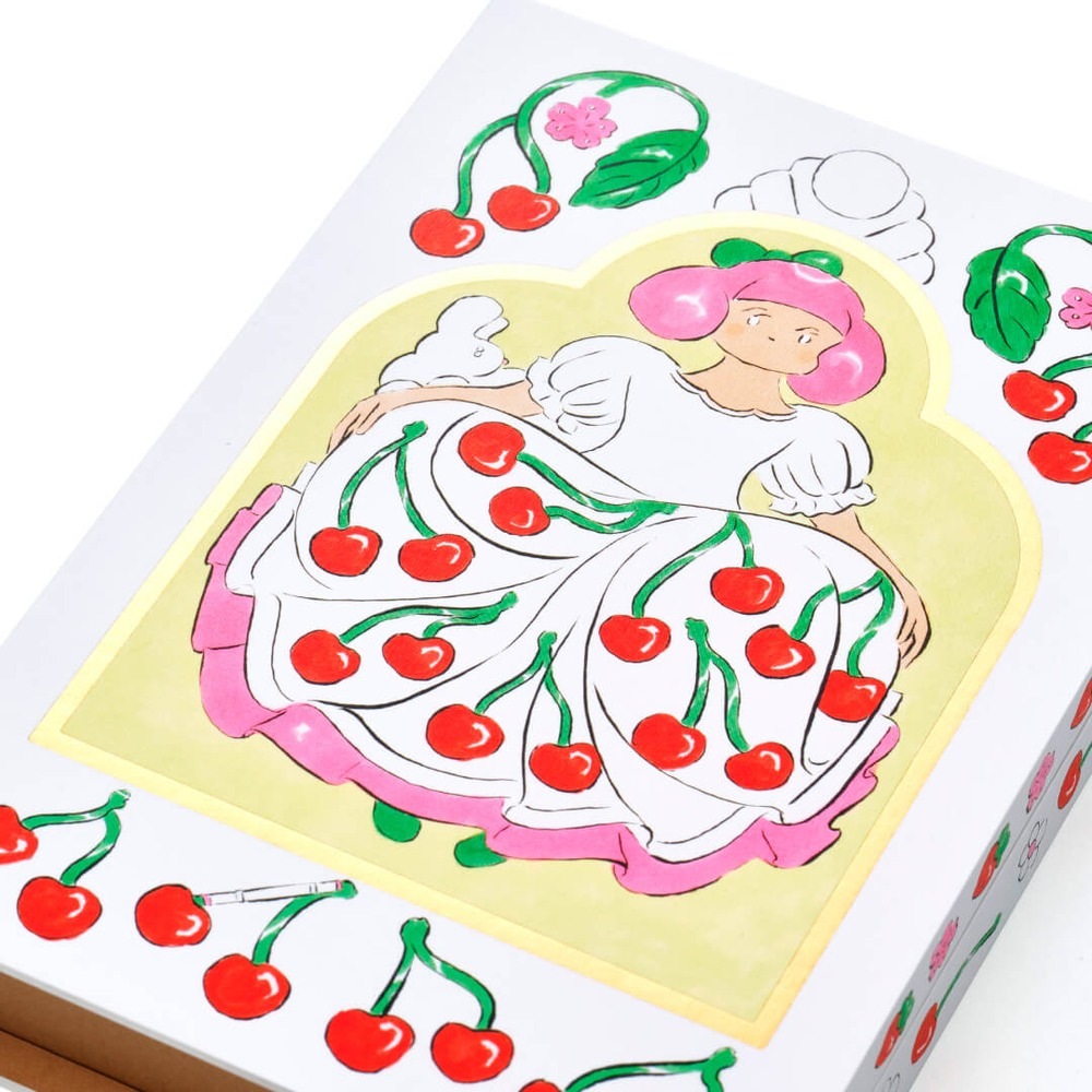 描き下ろしのオリジナルイラストの塗り絵やステッカーを北澤さんがセレクトしたコピックで自由に彩ることができます。コピックスケッチやポストカードが入ったパッケージは小物入れとしても長く使える特製ボックスです。