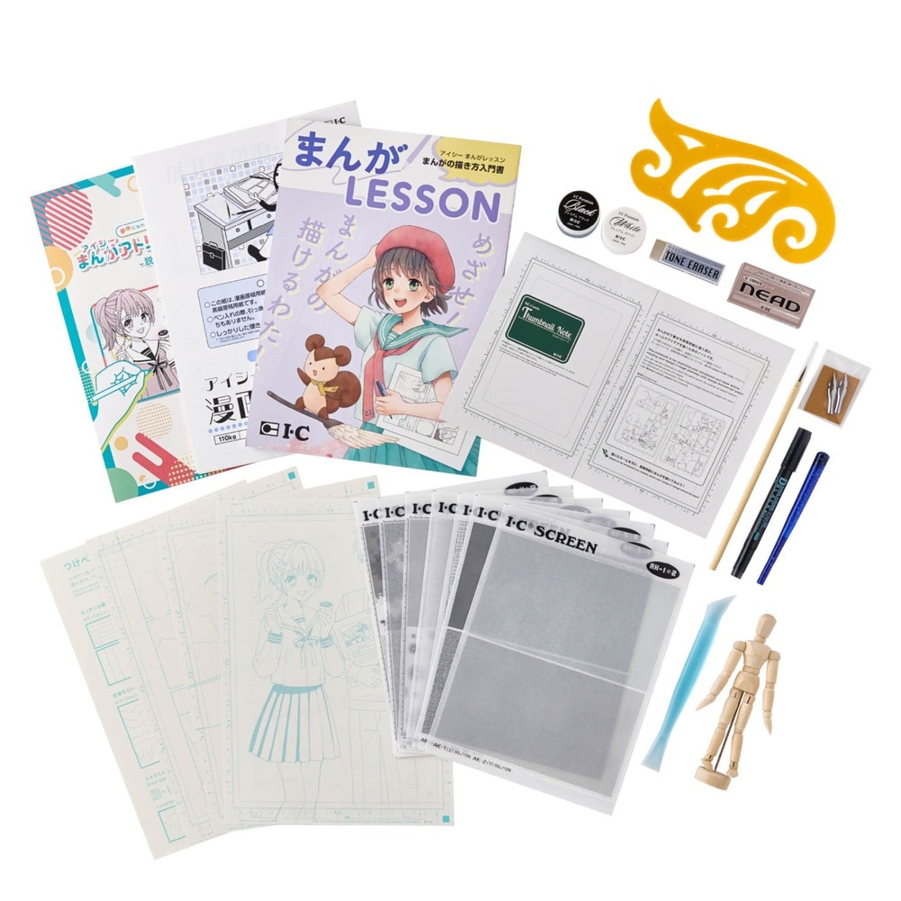 「アイシーまんがアトリエBOX PRO」は、まんが制作に必要な基本の漫画画材をセットにしたスターターキットです。